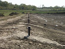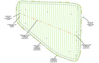 Typically, Multi-Flow LDVS is designed with a common-sense approach to gravity and slope. Following the contours of the pond or lagoons, collector lines are oriented in the direction that offers a path of least resistance to the high-point and low-point. Lines should be spaced for continuous coverage on 15 ft-20 ft intervals, making use of connectors and manifolds to achieve an efficient grid for collection and removal of fluids and soil gases.