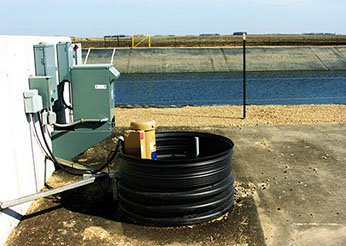 The low point of the Multi-Flow System is typically connected to piping which leads to a pumping or monitoring pit, or discharge location. This pit, located outside of the containment area, allows ground water to be removed from under the liner with a variety of pumping/piping options. Most importantly, it offers a leak detection/inspection point as well.