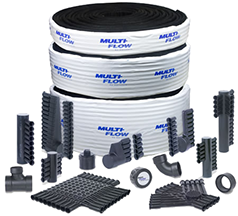 Multi-Flow is a closed core geocomposite drain made from HDPE. The flow channels are corrugated for strength, perforated for rapid infiltration, and interconnected for redundancy and performance. The resulting product is strong, lightweight, flexible and an excellent conduit for fluids and gases. It’s rounded shape eliminates sharp edges, making it easy on liners.