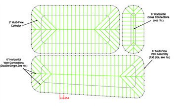 When fully assembled, Multi-Flow LDVS is quite simply a series of collector lines, spaced incrementally, and connected to drains on the low end and vents on the high end.