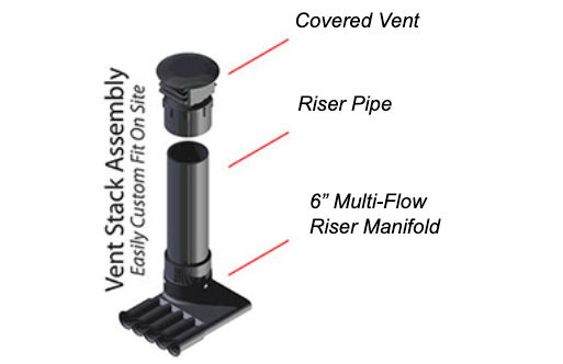 Vent Stacks are commonly used to vent collected gases to the atmosphere, while protecting the system from the elements. They are typically placed around the perimeter of the liner and are connected at the highest point of the collector lines. It is compatible with PVC/Sch 40.